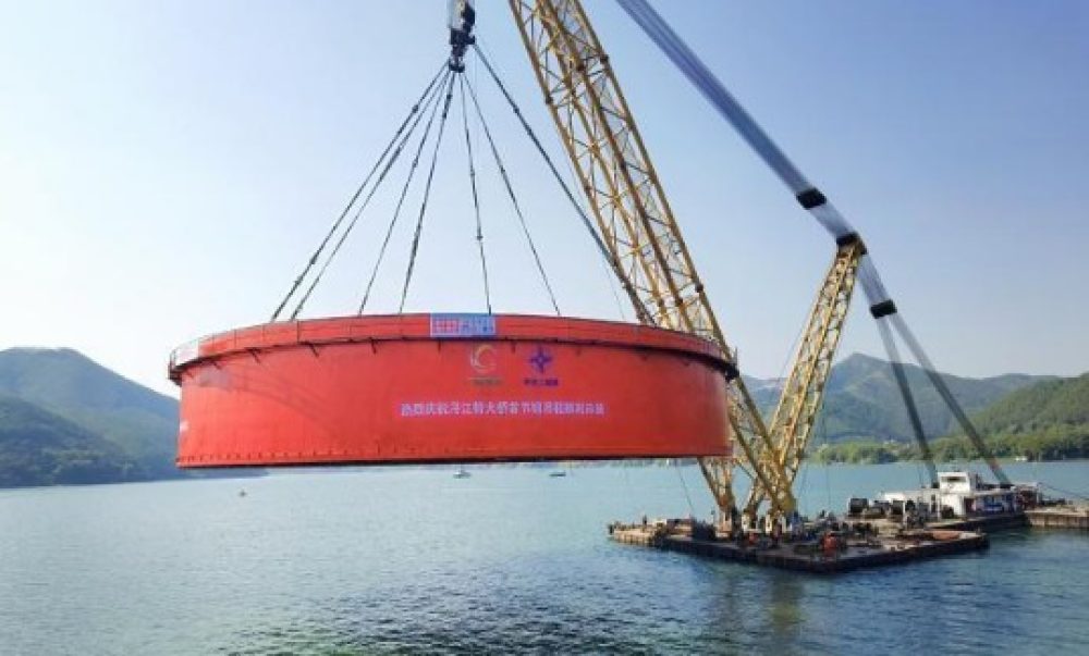 据悉,钢吊箱采用双层薄壁结构,外径38.6米,高15米,总重700吨,相当于700辆面包车的重量。如何成功吊起这“庞然大物”,成为摆在项目施工团队面前的重大难点。