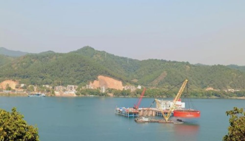 浔江特大桥位于梧州市苍梧县与藤县交界处,距离珠江出海口约420公里,下游有20多座跨江桥梁。由于沿途桥梁限高等因素影响,沿海地区大型浮吊设备无法进入桥区作业。