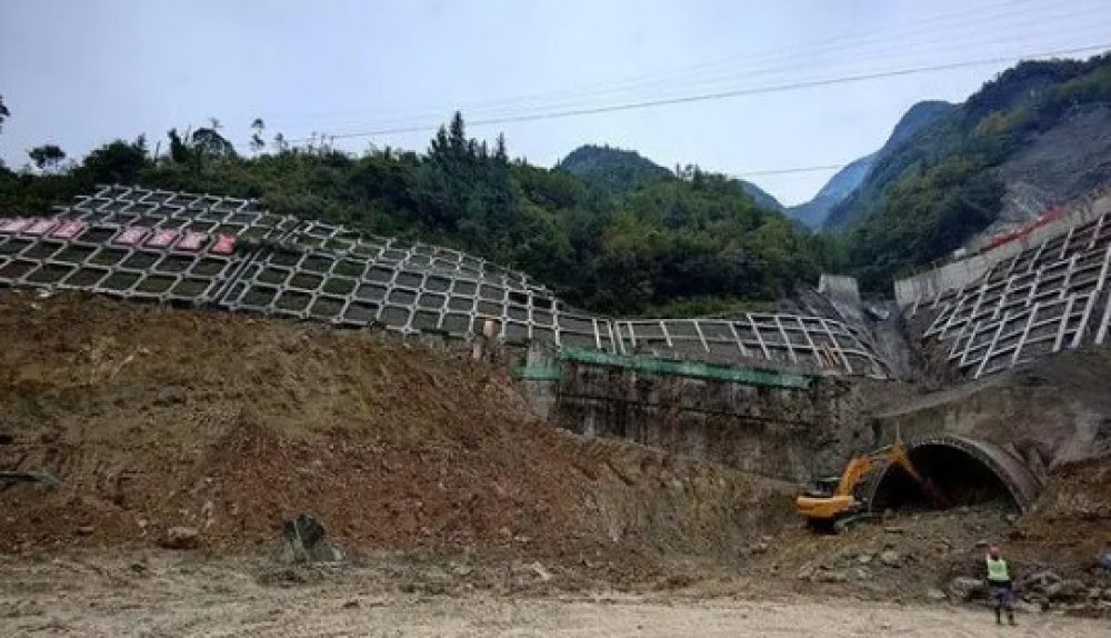 据悉,丁家隧道出口右洞原定7月开挖进洞,在场地平整过程中,经过地质雷达扫描发现坡体强风化层厚度大,岩体破碎,坡度陡,高度大,必须对其进行治理,以稳定上部坡体边缘不稳定孤石。为确保后续施工安全,重庆交通建设(集团)有限公司对其进口上方处,纵向长约70m、横向宽约30~50m、厚度3~8m的潜在滑坡地带进行了抗滑加固处理,开挖清运土石方约4万立方米,并采用抗滑桩+锚索框格梁的施工工艺,在地质滑坡带植入抗滑桩30根,锚索框格梁14800米,对其进行永久加固,防止次生滑坡灾害,确保安全施工。