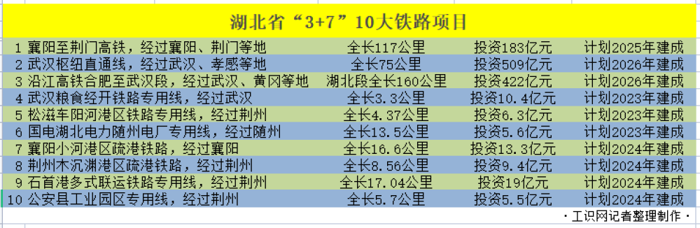 湖北省发挥区位交通和市场空间优势,结合交通市场枢纽功能,积极推动“3+7”十大铁路项目,今年湖北省动工的10大铁路项目总投资1183.5亿元。