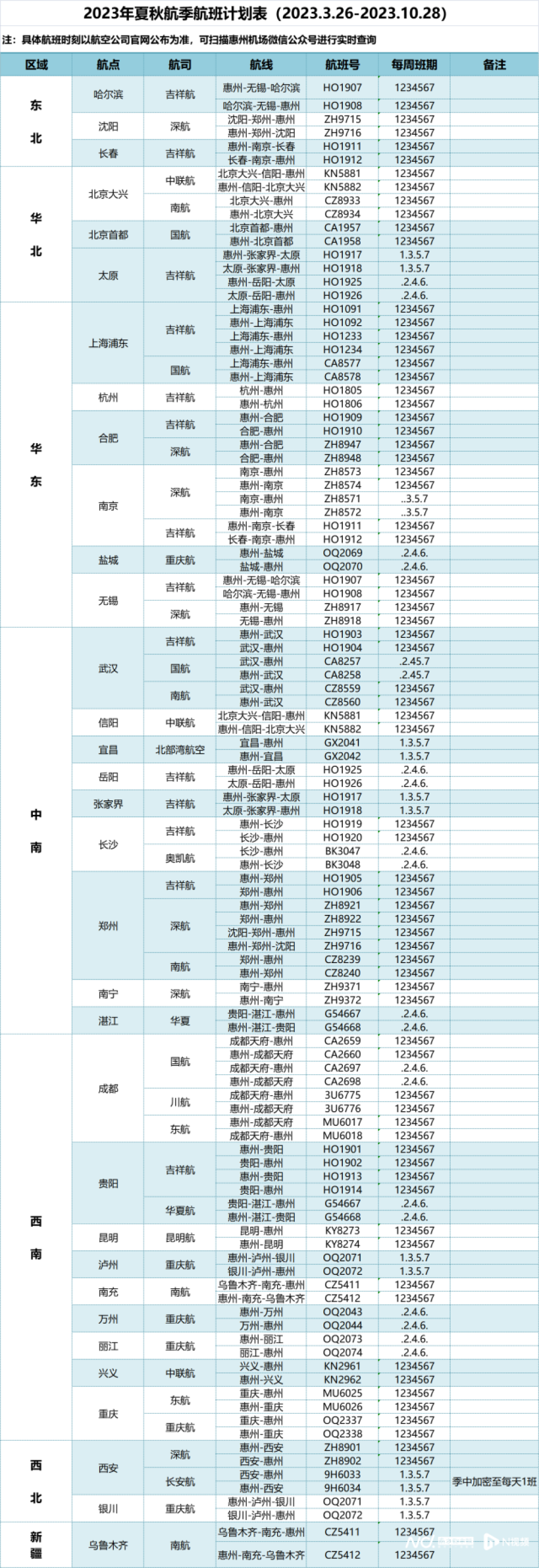 前几天,惠州机场举行了发布会,在即将到来的2023年夏秋航季(3月26日-10月28日),机场将会增加8新条航线,包含长春、南宁、湛江、盐城、丽江、万州等新航点。
