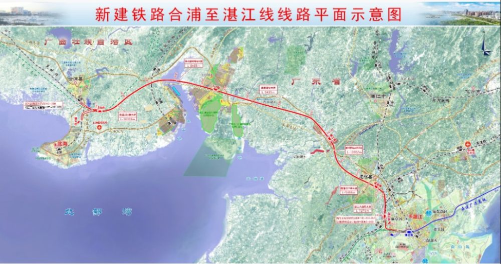 线路意义:合浦至湛江铁路是我国规划“八纵八横”高速客运网中“八纵”之包(银)海通道和“八横”之沿海通道的重要组成部分,也是北部湾地区的城际骨干线路。